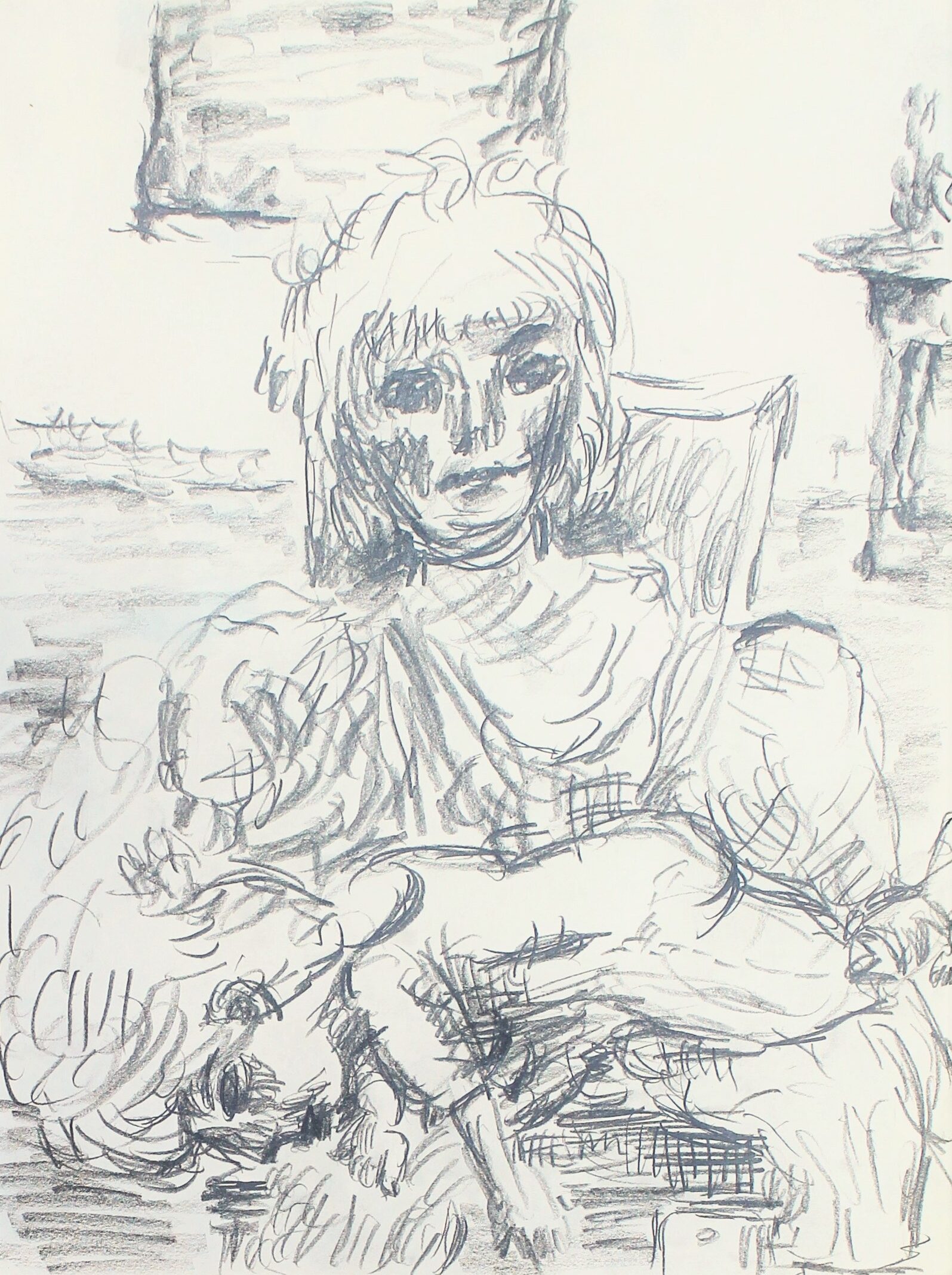 doll study/ puppenstudie pencil on paper, 24cmx32cm, 2022 << portrait (clemens) >> sitting in-between