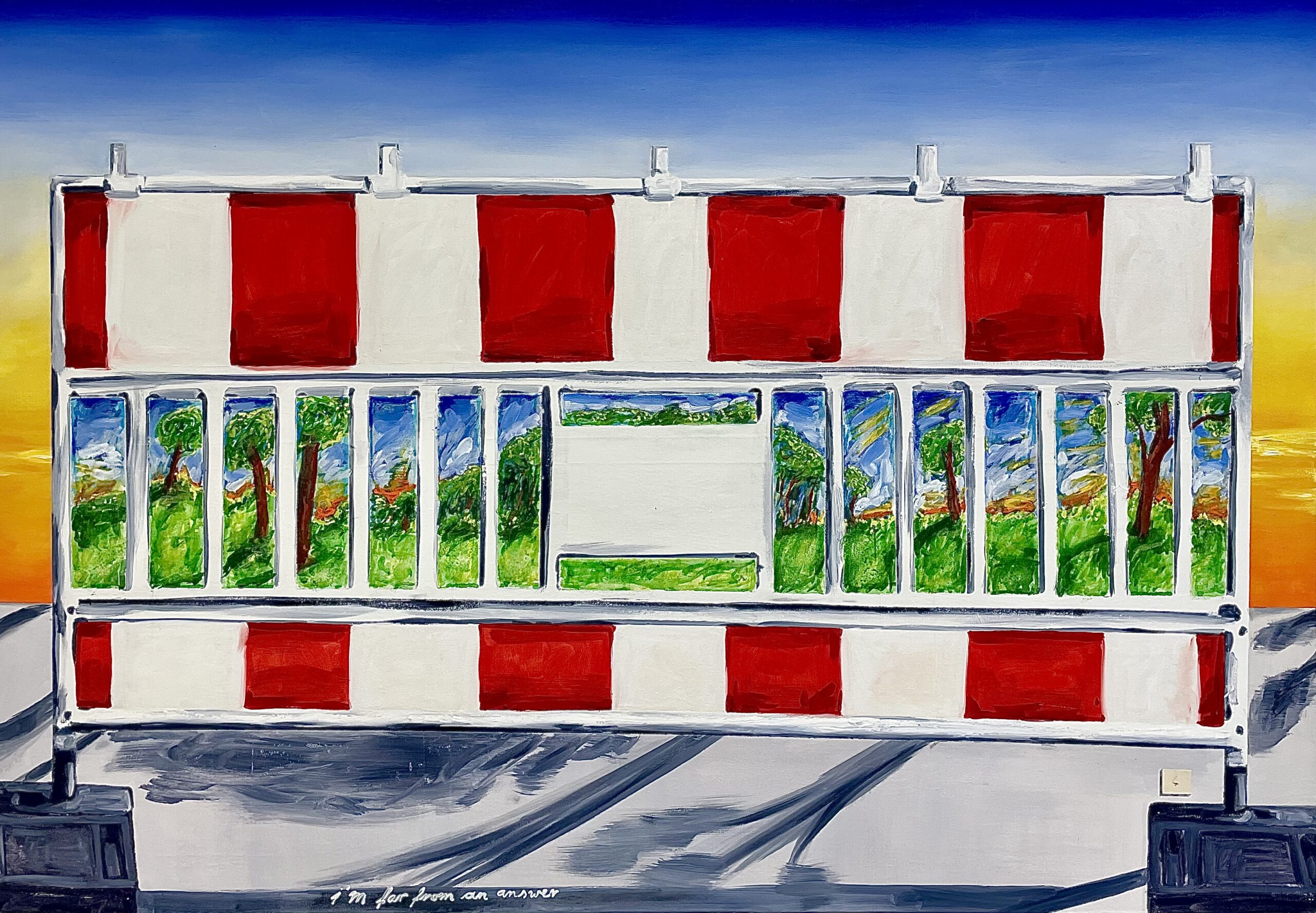 i‘m far from an answer oil, watercolor, pencil and paper on canvas, 200cmx140cm, 2023 << portrait meiner mutter >> the curtain