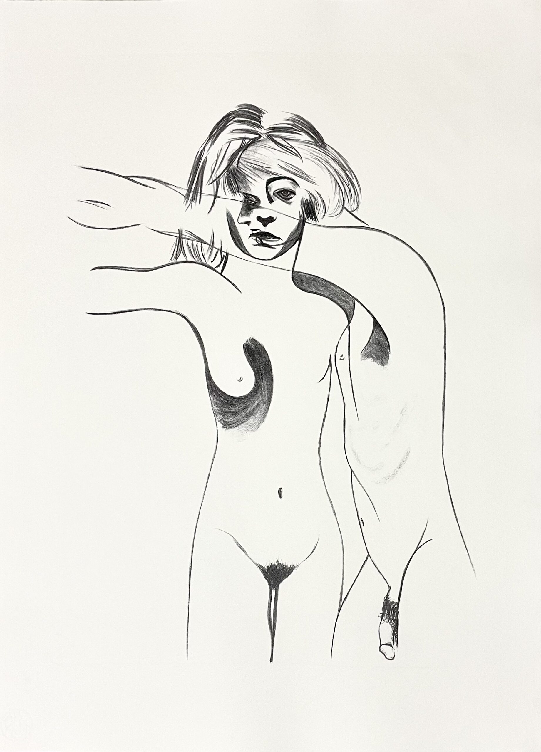 overlappinglithograph on deckle-edged paper, 42cmx58cm ( drawing ) – 53cmx72cm ( sheet ), limited edition of 10, 2023 << womb >> tree